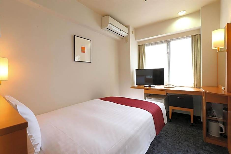 Compact but modern air-conditioned room with a desk and an private bathroom. A fridge, slippers and an electric kettle with green tea are provided.
